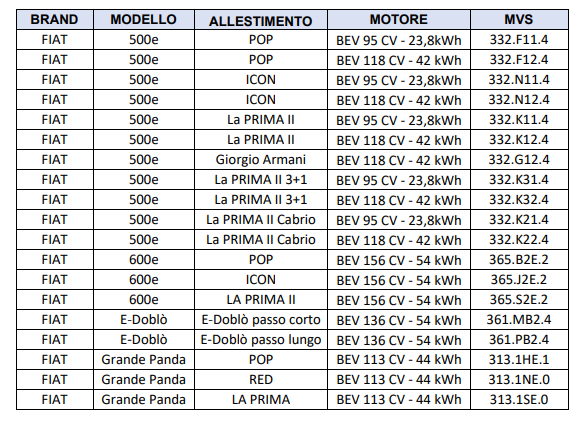 Informiamo che l’intera gamma Fiat full-electric beneficia dei nuovi Ecobonus. Di seguiti uno schema riassuntivo delle versioni: