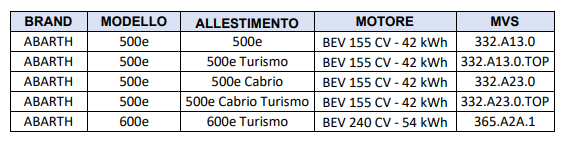 Questi invece i modelli e le versioni di Abarth che beneficiano degli incentivi statali: